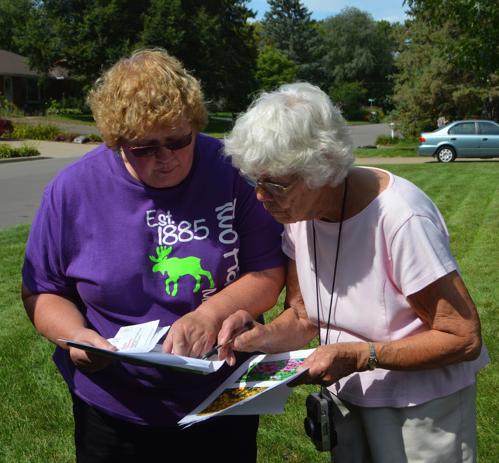 | Ed Shinbach and Barbara Le Tourneau, Ramsey County Master Gardeners, engaged with a team of many Master Gardeners who helped Casey Lake neighborhood residents plant their curb-cut rain gardens. |