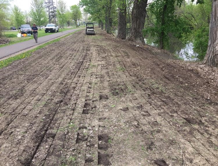 Now in its third year, this latest phase of the restoration creek buffer project encompasses an area along the east side of the creek between the north parking lot at Lake Phalen near the boat launch and just south of the Frost Avenue Bridge. To prepare the area, invasive trees and shrubs were removed. The turf grass along the edge of the path next to the creek was killed and a seed mix planted beneath the erosion blanket fabric that covers the planting area.