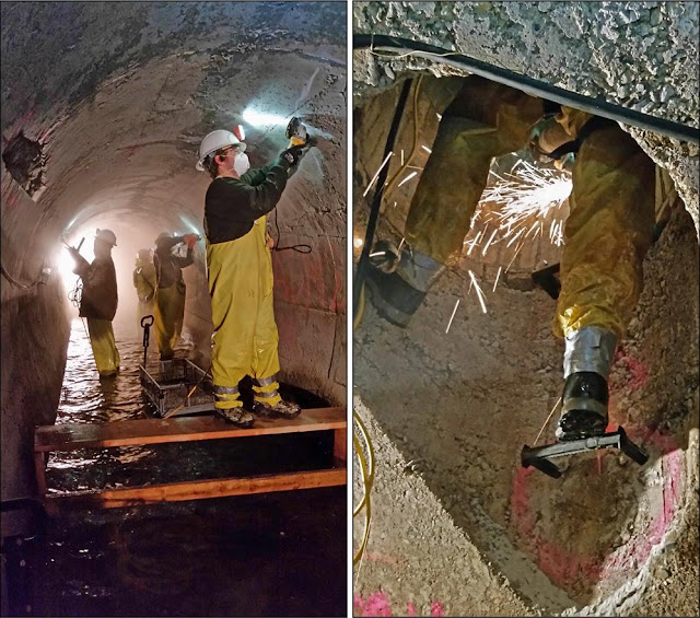 | PCi cleaning and injecting material into cracks in the tunnel. |