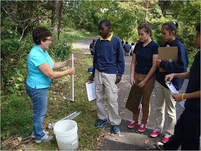 Each fall Sue brought her classes to Battle Creek to do stream monitoring.