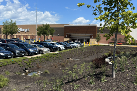 Six rain gardens and one infiltration trench filters runoff from the church parking lot.