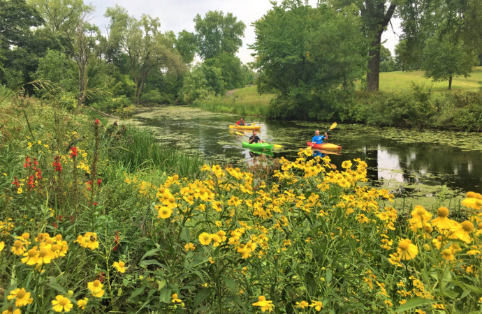 The Keller Creek restoration project brought significant improvements to wildlife habitat and recreation along nearly a mile of this popular creek. Aquatic emergent plants like bulrush and burreed protect banks from high water flows. Along the creek-edge, deep rooted native plants stabilize soils and filter out pollutants. A plethora of flowers provide pollen, nectar and seeds to butterflies, bees and birds. An array of attractive blooms greet park users throughout the growing season. Families take advantage of the reconstructed access areas to float, fish, picnic, and simply enjoy watching the creek.
